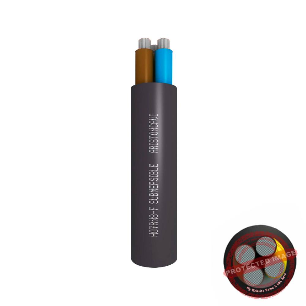 Cable SUBMERSIBLE H07RN8-F, flexible clase 5, conductor Cu/Sn, aislam.EPR tipo EI4, T° operación 90°C, chaqueta negra neopreno tipo EM2. Uso pesado portatil resist. arrastre y sumergible hasta 100 metros grado AD8 (EN 50525-2-21) resistente rayos UV (ISO 4892-2), ozono (IEC 60811-403) y aceites minerales (IEC 60811-404), máx.tensión operación 0.7/1.2KVac. Estandar fabric.VDE 0207 y EN 50363-2-1