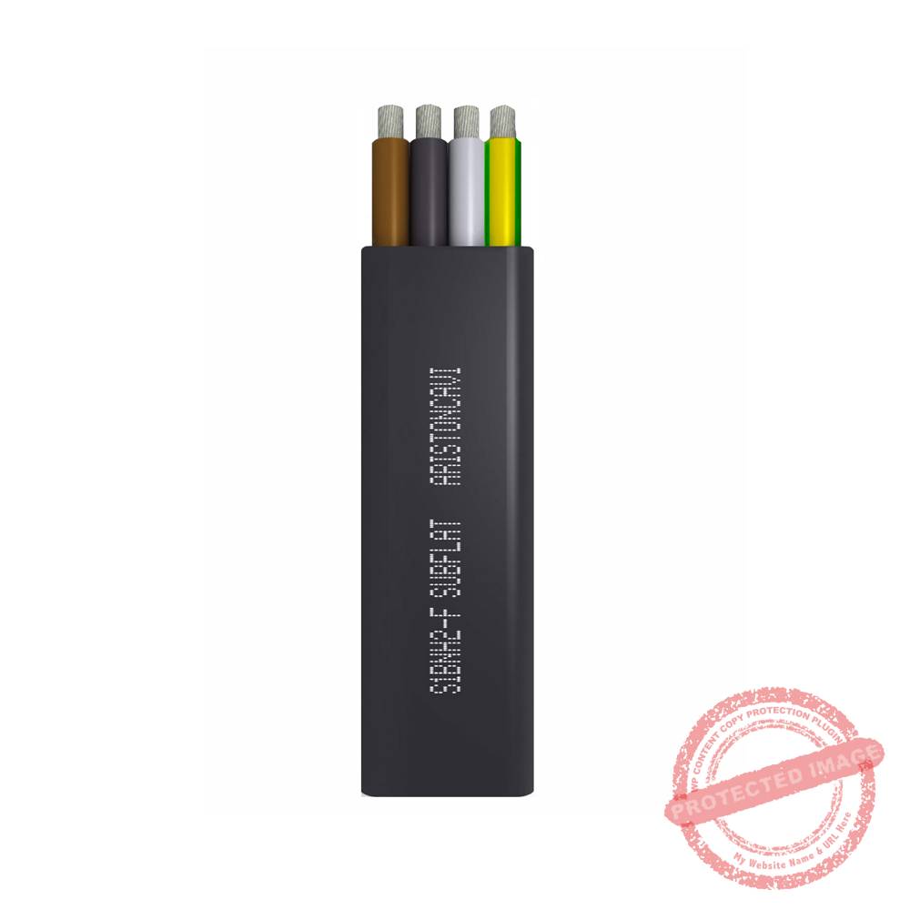 Cable SUBFLAT S1BNH2-F, flexible clase 5, conductor Cu/Sn, aislam.EPR tipo 3GI3, T° operación 90°C, chaqueta negra neopreno tipo EM2. Uso movil pesado en grúas/polipastos y sumergible hasta 300 metros grado AD8 (EN 50525-2-21) resistente rayos UV (ISO 4892-2), ozono (IEC 60811-403) y aceites minerales (IEC 60811-404), máx.tensión operación 0.7/1.2KVac. Estandar fabric.VDE 0207 y EN 50363-2-1
