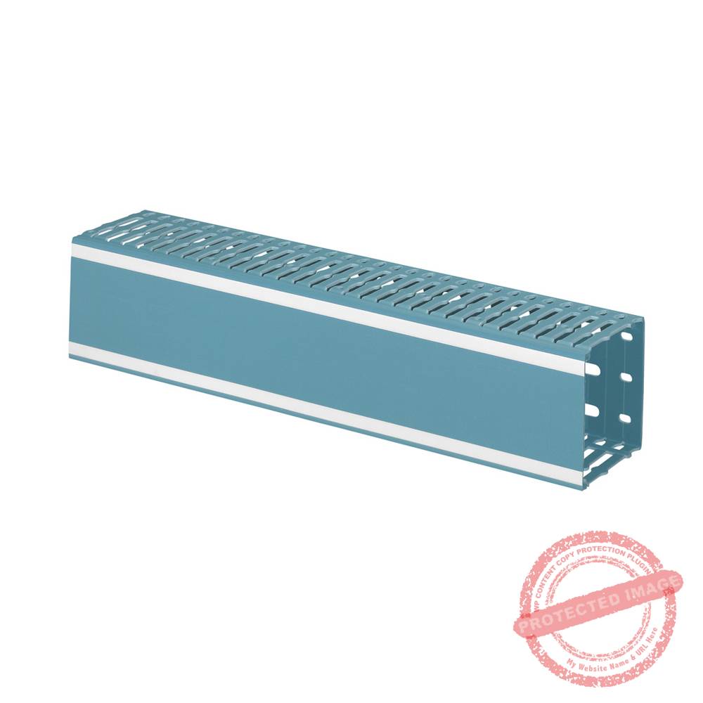 Canaleta ranurada de PVC rígido color azul. Ideal para el ruteo y canalización de cableado en tableros eléctricos y de telecomunicación. Cuentan con perforaciones en la base para una rápida instalación y montaje. Medida de: 40mm de ancho, 80mm de alto y longitud de 2 metros. Certificado de acuerdo a la norma EN50085-2-3.