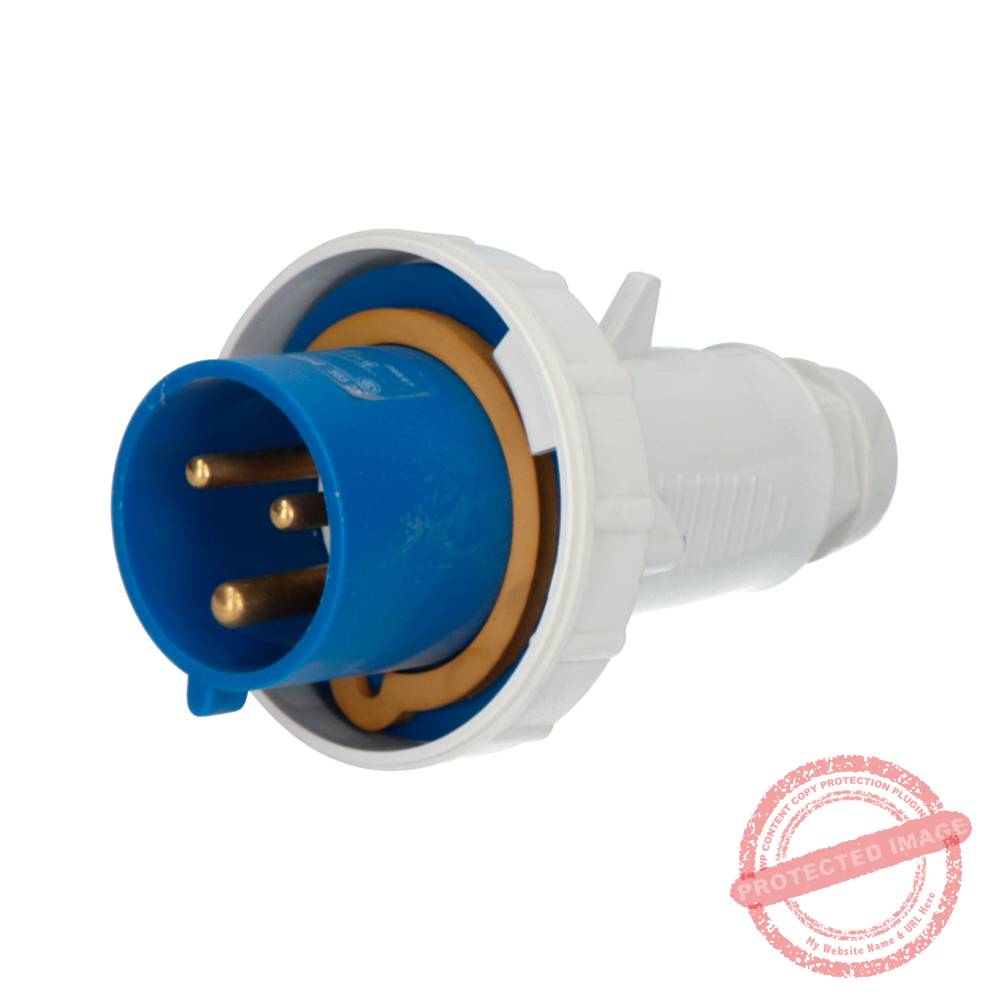 Enchufe industrial 2x32A+T, con voltaje de 250V y grado de protección IP67. Cumple con el estándar de conexión de 6 horas (6h) y es de la serie Tempra. Este enchufe está diseñado para aplicaciones industriales y cuenta con un alto nivel de protección contra el polvo y el agua, asegurando un funcionamiento seguro incluso en entornos adversos.