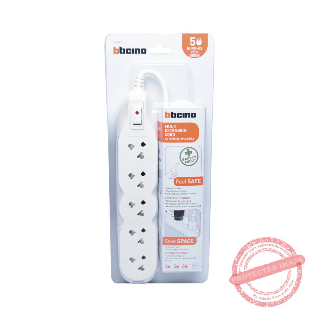 Extensión 5 tomas universal + tierra. Longitud del cable de 3 metros.