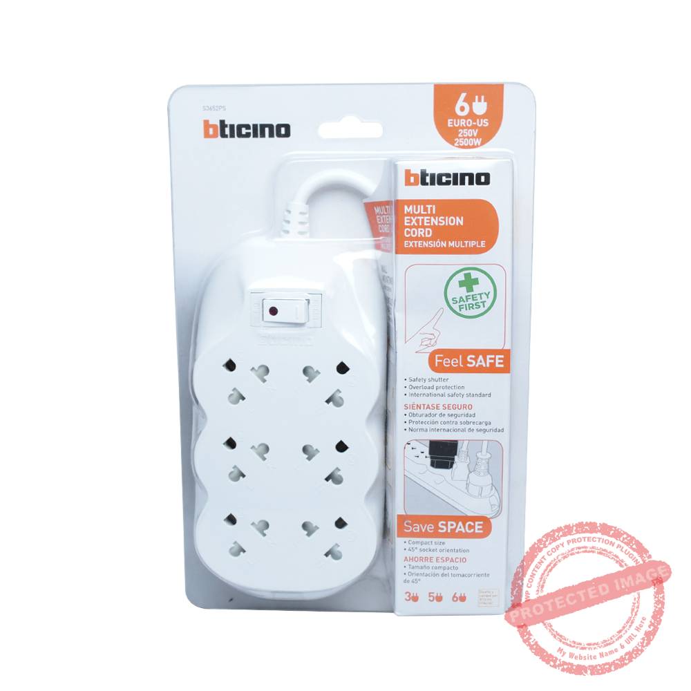 Extensión 6 tomas universal + tierra. Longitud del cable de 3 metros.