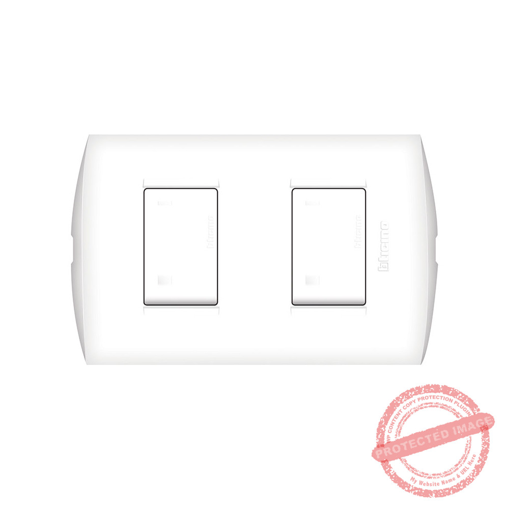 Interruptor doble 10A para 250V para 3 vías. Línea Domino Sencia. Color blanco.