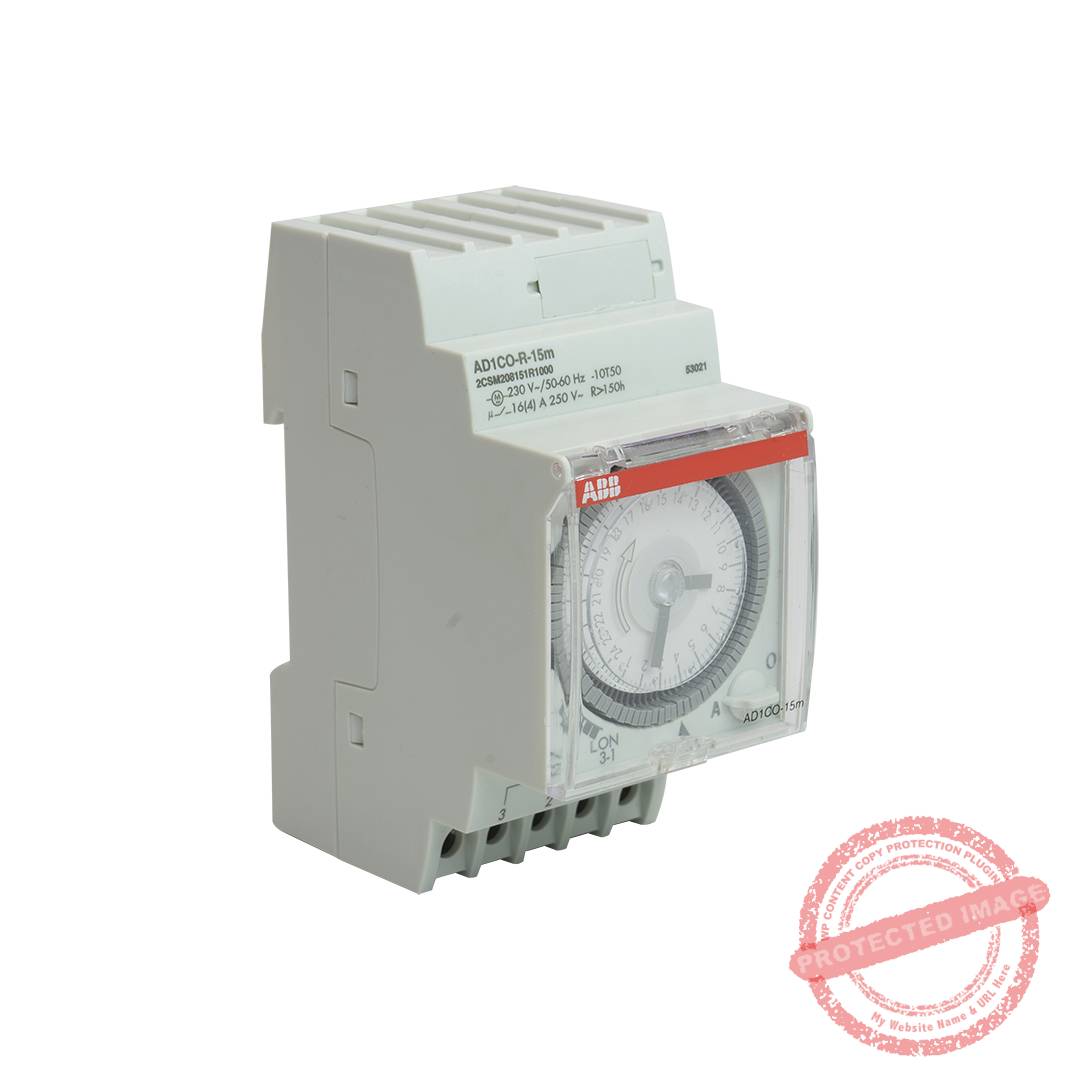 Interruptor horario analógico programación diaria cada 15min con reserva, 16A, 230V, 1 canal conmutado NA, montaje en riel DIN.