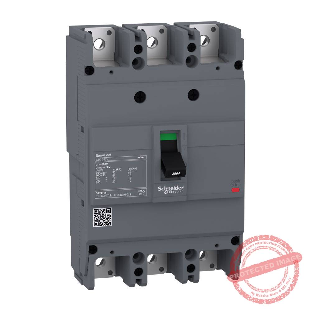 Interruptor termomagnético de caja moldeada fijo, 3P, 125A, 20kA en 440V, 50kA en 220V según IEC 609447-2, modelo EasyPact EZC250