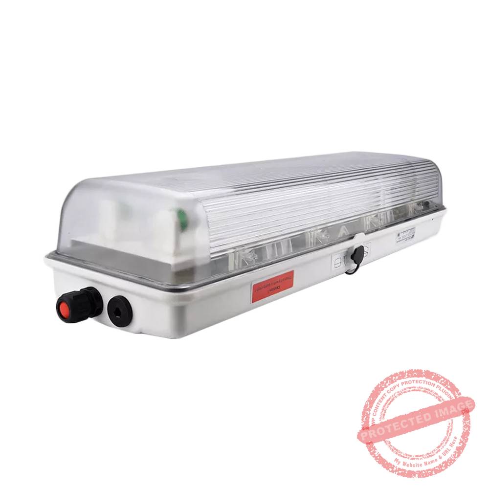De poliéster reforz.c/fibra vidrio y difusor de policarbonato, conex./desco.centralizado (llave hexag.13), 110-240V, 3 entradas M25 (1 prensa. 8-17mm+2 tapones). Uso: áreas con presencia de gases/líquidos y polvos combustib.con riesgo de explosión. Certific.: IECEx (EX db eb q IIC T4 Gb, EX tb A21 IP66 T80°C). Flujo 6700lm. Incluye 2 sopor.inox.p/adosar y tubos fluorescen. Dimensi.: 1310x222x145mm