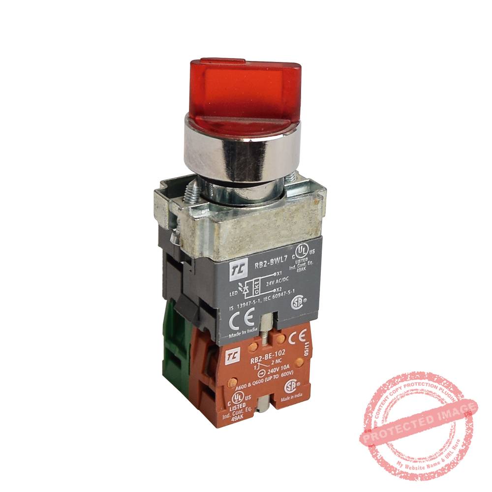 Selector luminoso rojo 24VAC/DC 2 posiciones fijas 1NA+1NC.