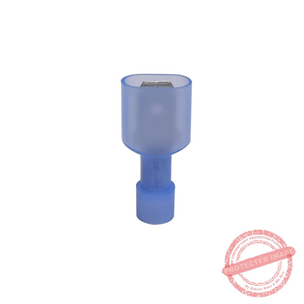 Los terminales tipo enchufe macho aislados son fabricados de cobre estañado con aislamiento de PVC. Ideales para conexiones eléctricas con poco espacio y para cables con rango de calibre de 14 – 16AWG. Es importante realizar su conexionado con herramienta para una correcta fijación. Color azul conforme a la norma NFC 63-023. Presentación en bolsa de 100 unidades.