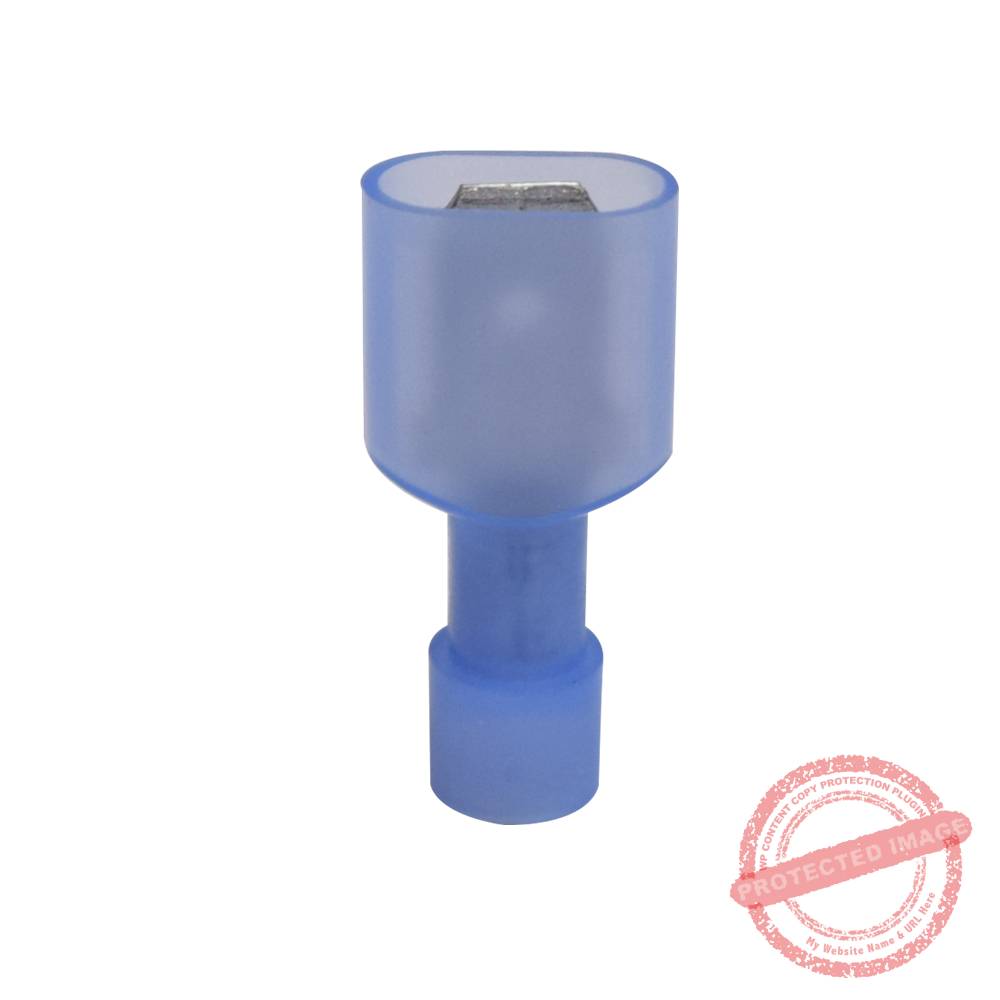 Los terminales tipo enchufe macho aislados totalmente son fabricados de cobre estañado con aislamiento de PVC. Ideales para conexiones eléctricas con poco espacio y para cables con rango de calibre de 14 – 16AWG. Es importante realizar su conexionado con herramienta para una correcta fijación. Color azul conforme a la norma NFC 63-023. Presentación en bolsa de 100 unidades.