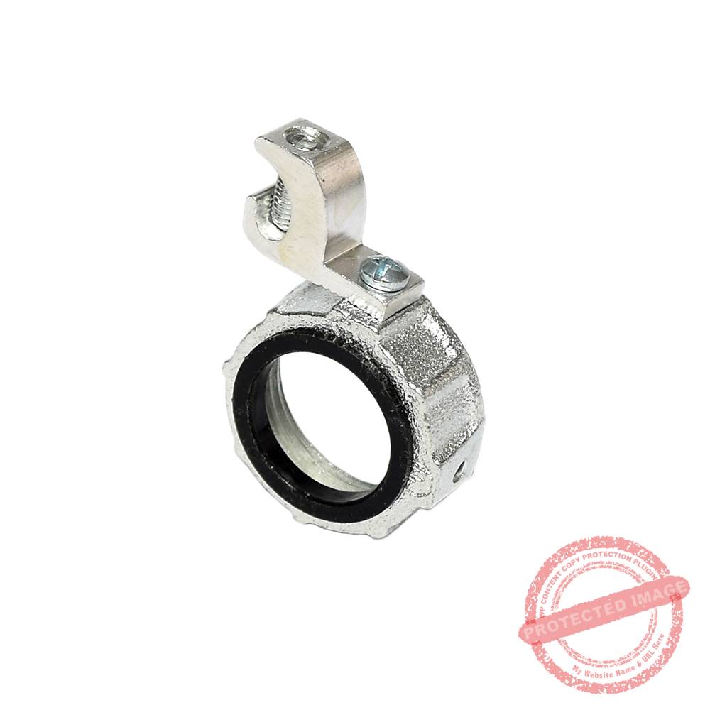 Tuerca bushing aislada con línea a tierra. Fabricado en hierro maleable con gargante plástica para evitar daños en la instalación del conductor. Se utilizan con contratuerca para la terminación de tuberías IMC o Rigid con rosca a una caja o envolvente. Certificación: UL.